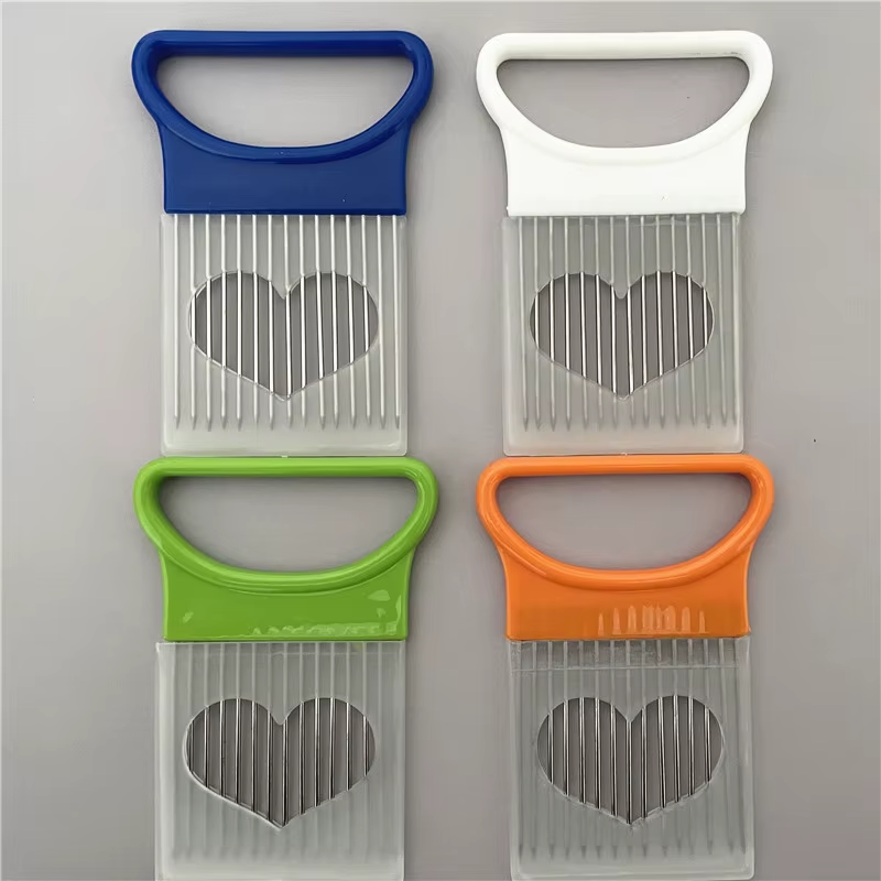 Chega de chorar cortando cebolas ou se arriscar com facas escorregadias — com o Cortador de Cebola em Aço Inoxidável Tesouros Promo, você fatiará como um chef, com segurança, precisão e praticidade em segundos!